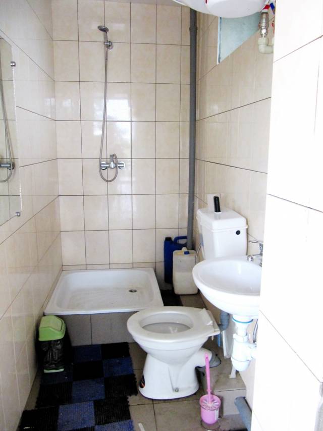 Душ, туалет общий, есть горячая вода.