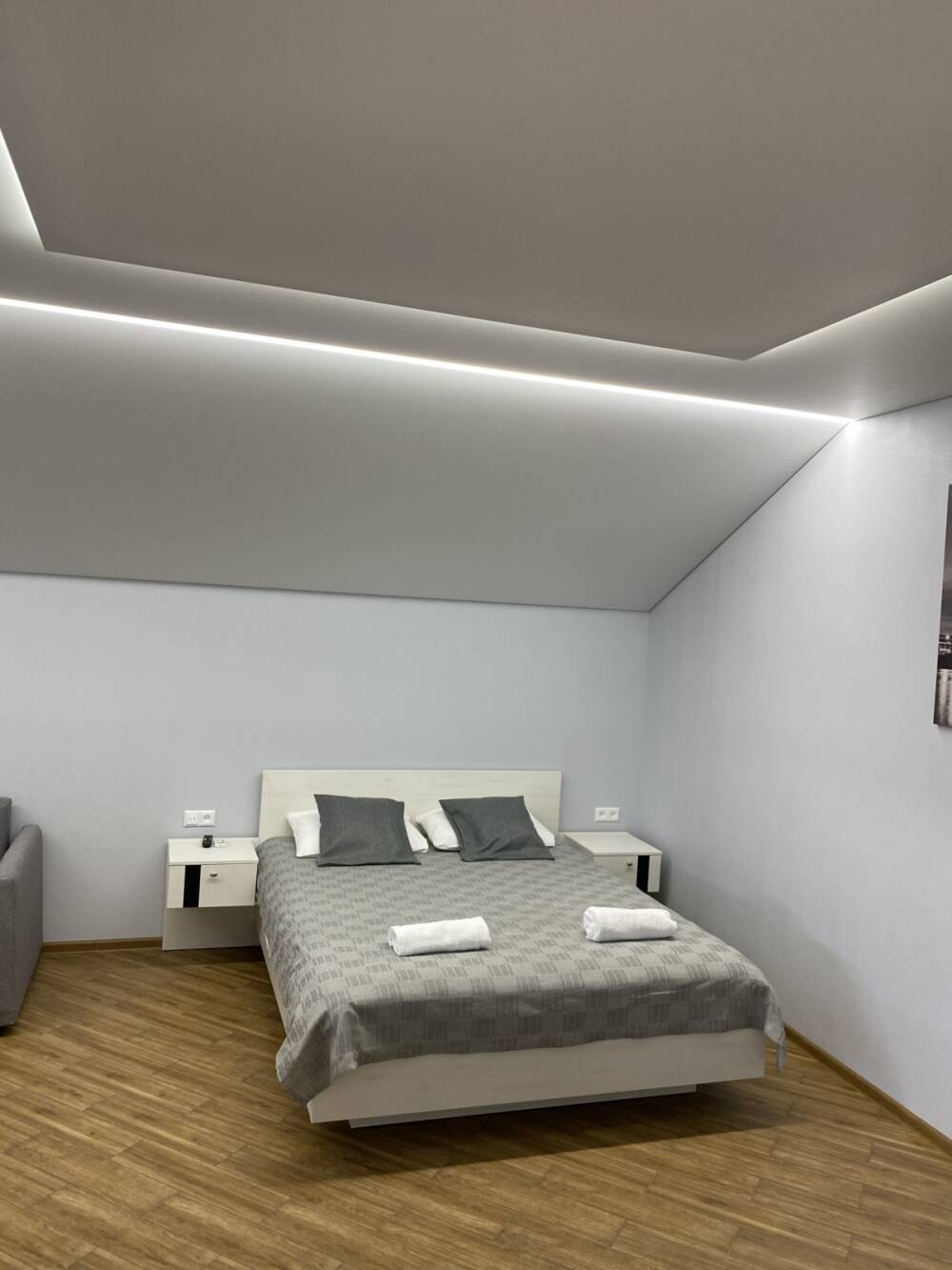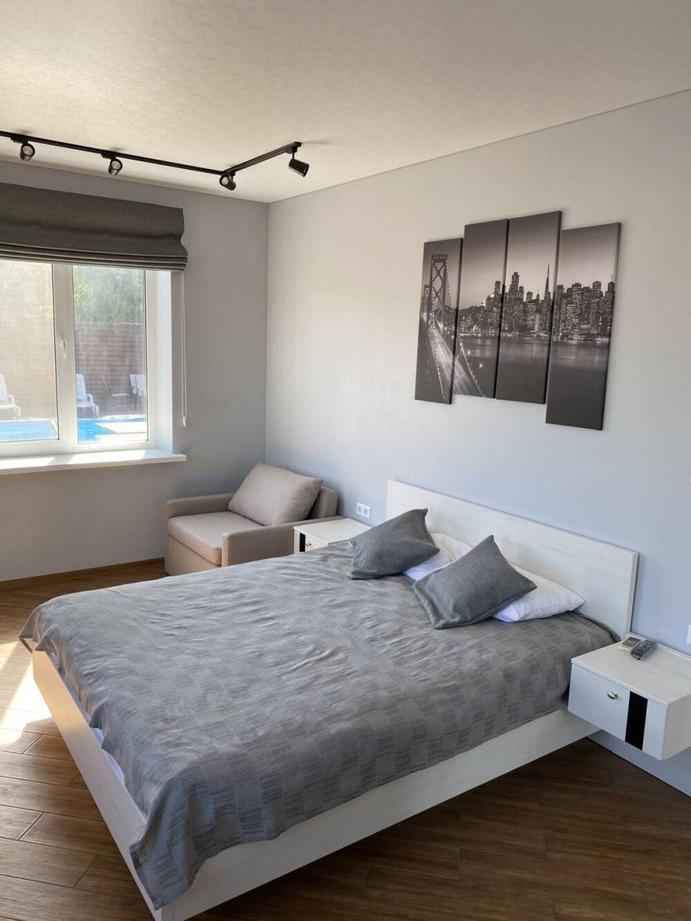 Опис: Тримісний номер з двоспальним ліжком, розкладним кріслом та зручностями у номері